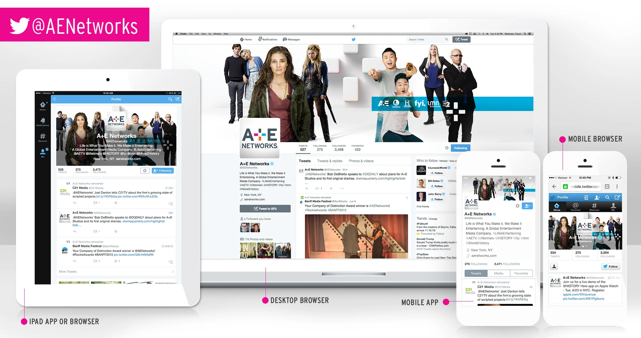 A+E Networks needed a way to represent six of its networks in a unified way. Each network had distinct key art with different lighting and messaging. I created a space using the A+E Networks "+" and had all the photography adjusted with retouching to have similar aesthetics. I then made sure that the one composition was designed to work in all mobile capacities. The new campaign received overwhelmingly positive feedback and set the tone for our social media going forward.